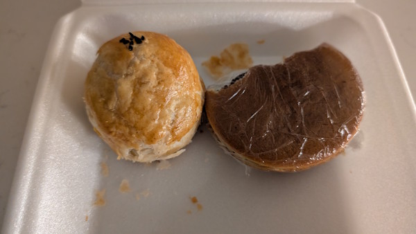 We took G’s mom shopping at Costco today. Afterward, we stopped by a Chinese bakery and dim sum takeout spot, where we had fun pointing at different items for the lady behind the counter. His mom insisted on paying for all the delicious treats we picked out, and it suddenly made me feel like a kid again—in a good way—just like when my parents used to pay for things when I was little.